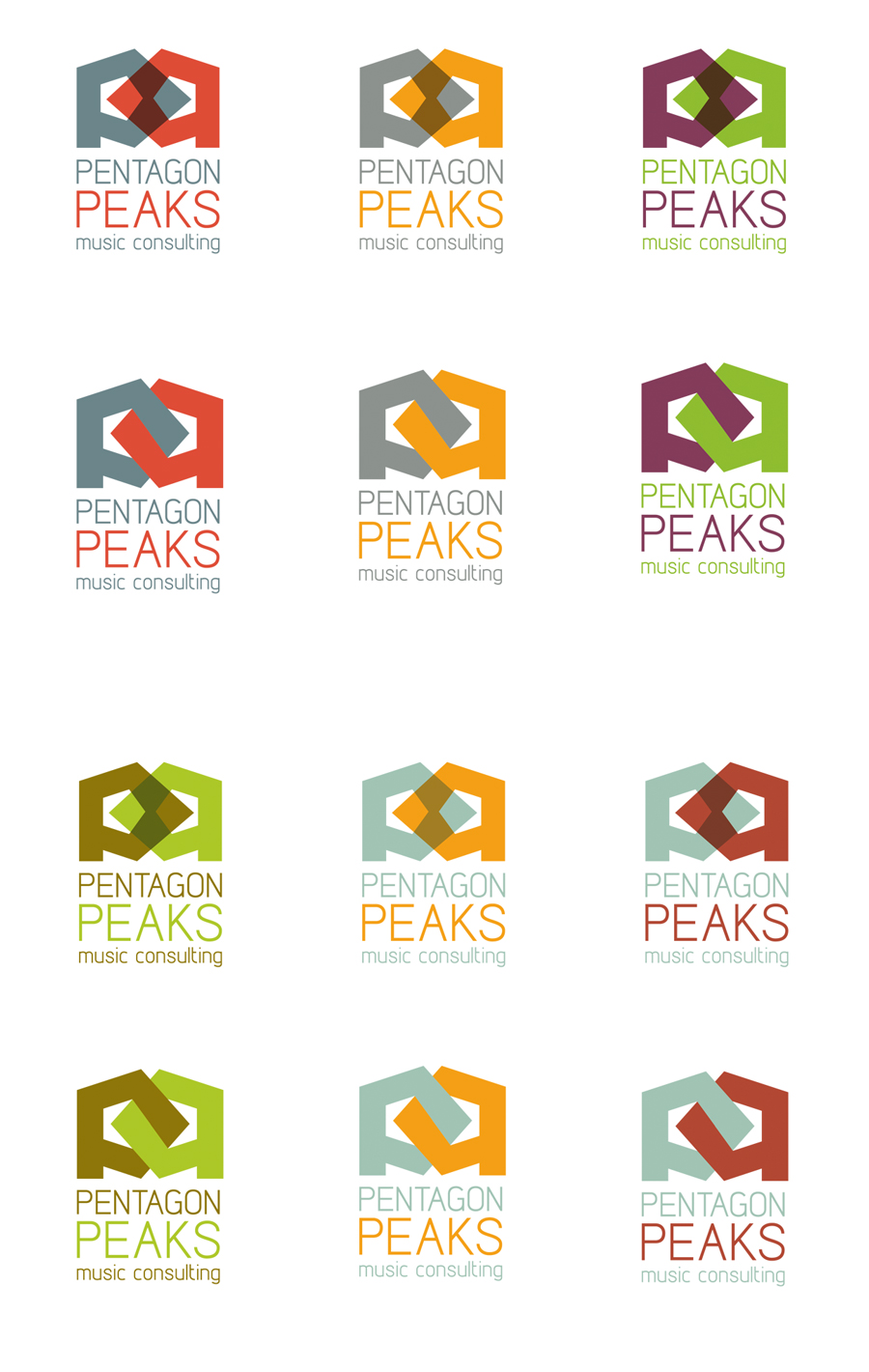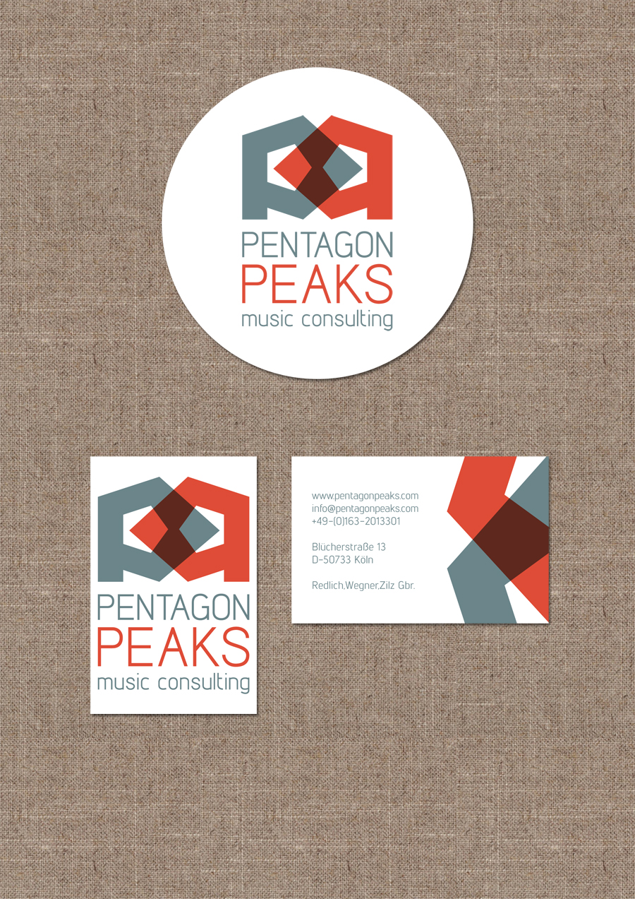Entwürfe eines Logos für das leider bislang nicht in die Tat umgesetzte Unternehmen PENTAGON PEAKS - Music Consulting.