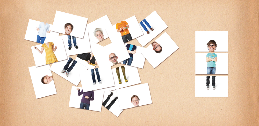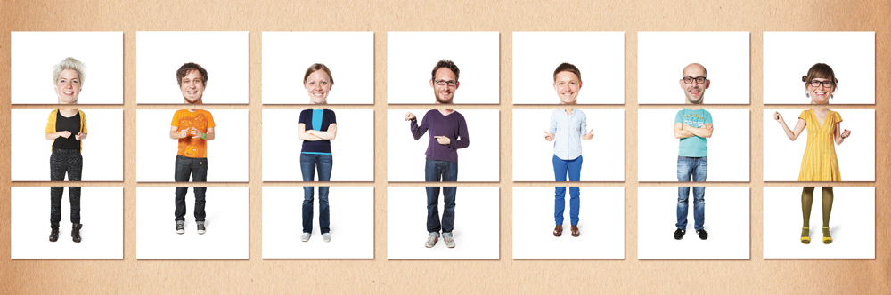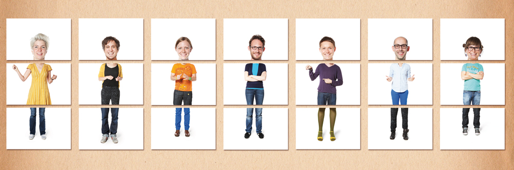 Jeder von uns bekam sein eigenes Set bestehend aus Karten mit 3 unterschiedlichen Vorderseiten: Kopf – Rumpf – Beine.