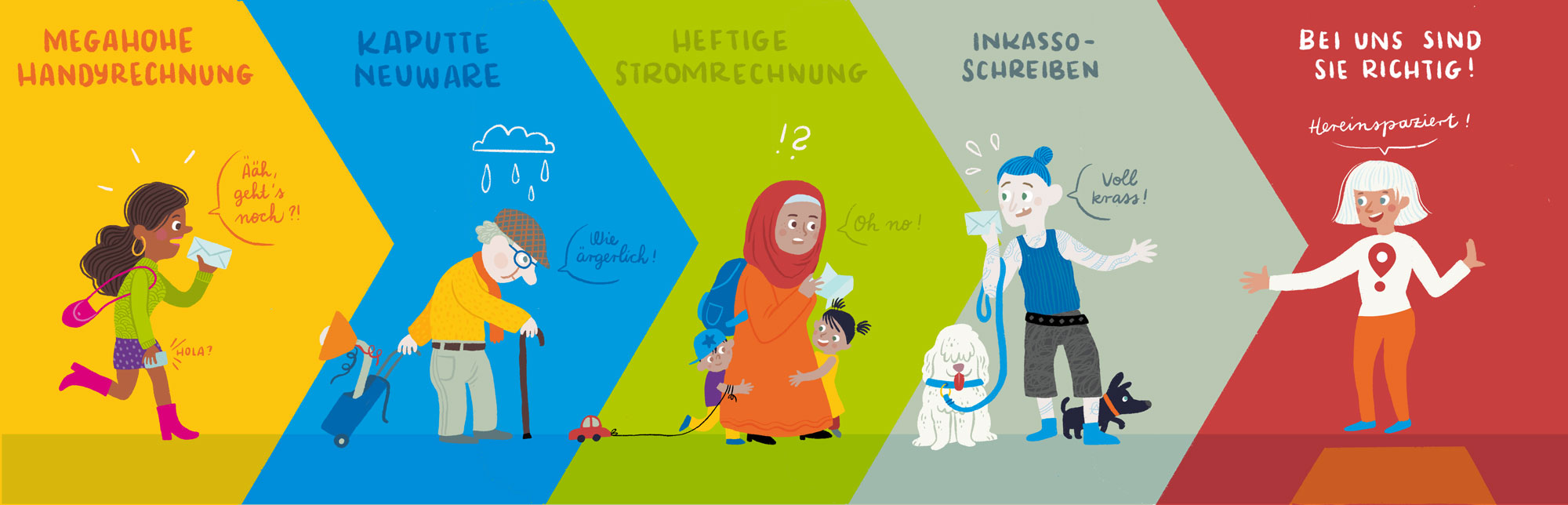 Mit ihrem Projekt Verbraucher stärken im Quartier berät und begleitet der Verbraucherzentrale Bundesverband benachteiligte Verbraucher*innen , die aufgrund von Sprachbarrieren, geringerer Bildung und sonstigen Einschränkungen besonderen Schutz benötigen, wenn es um alltägliche Themen wie z.B. Verträge, Rechnungen und Reklamationen geht.